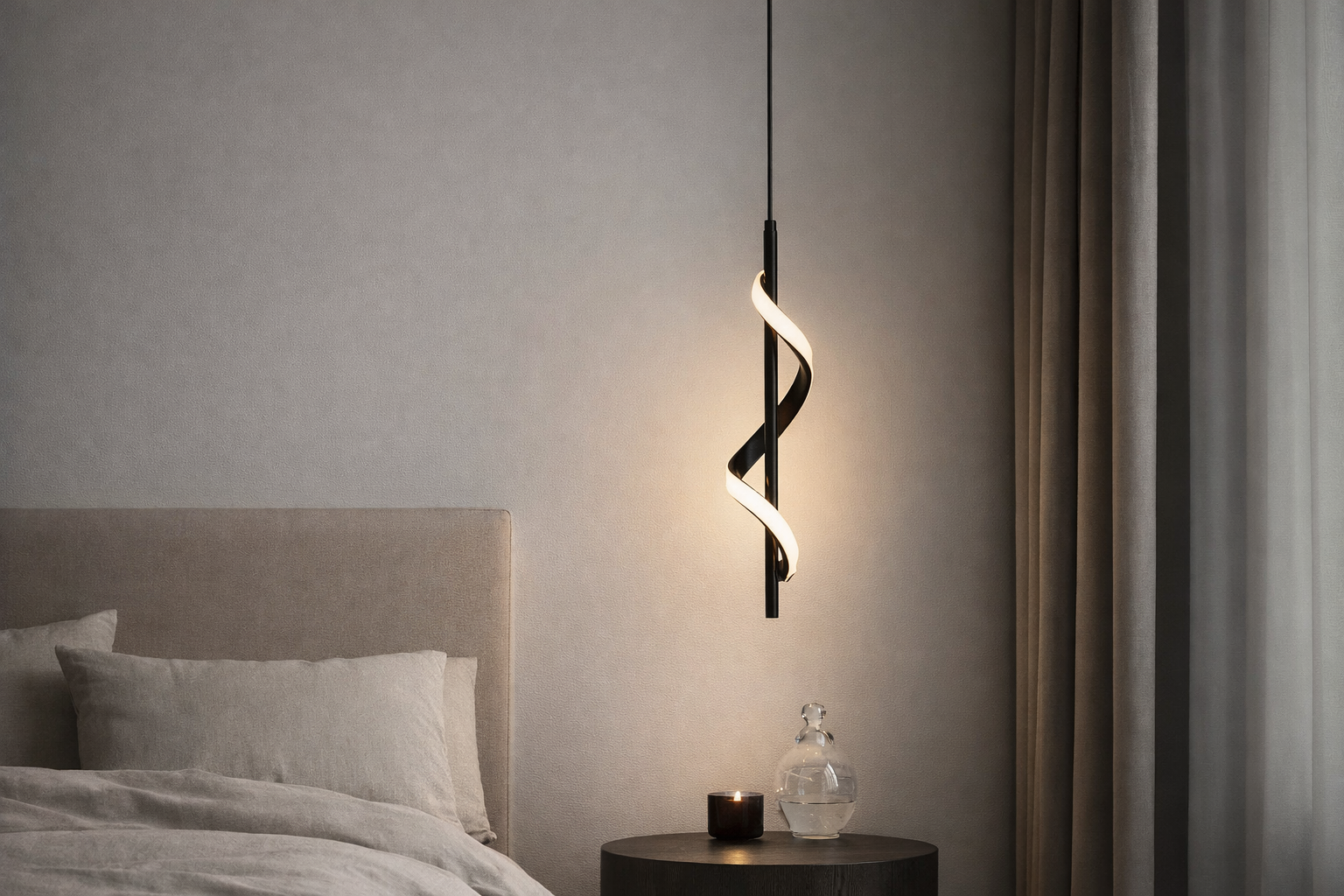 The Axis Twist Pendant redefines minimalism through movement and structure. Its sculptural spiral design creates a dynamic visual presence, transforming light into a fluid architectural element within your space.
